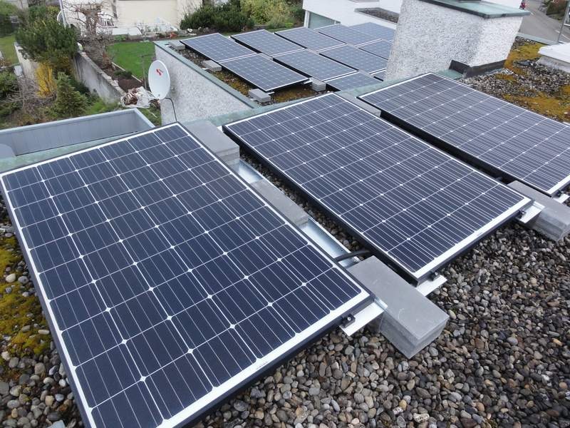 Solarstromanlage mit 24.4 kWp Nennleistung. Flachdach.